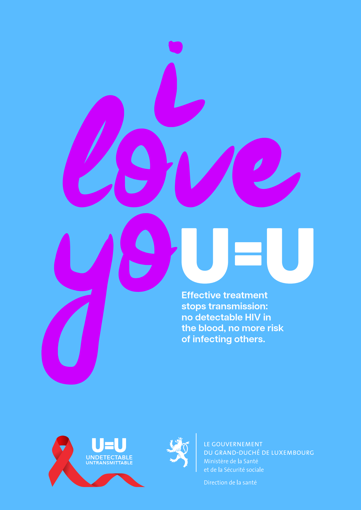 À l’occasion de la Journée mondiale de lutte contre le SIDA, le ministère de la Santé et de la Sécurité sociale lance une campagne portant sur la thématique «Indétectable = Intransmissible» (en anglais «Undetectable = Untransmissible»). Une personne qui vit avec le virus, et qui suit un traitement efficace, arrive à maintenir la quantité de virus circulant à un niveau qu’elle devient indétectable. Dans cette situation, elle ne transmet plus l’infection (y compris durant une grossesse, lors de l’accouchement, de l’allaitement ou lors de relations sexuelles sans protection).