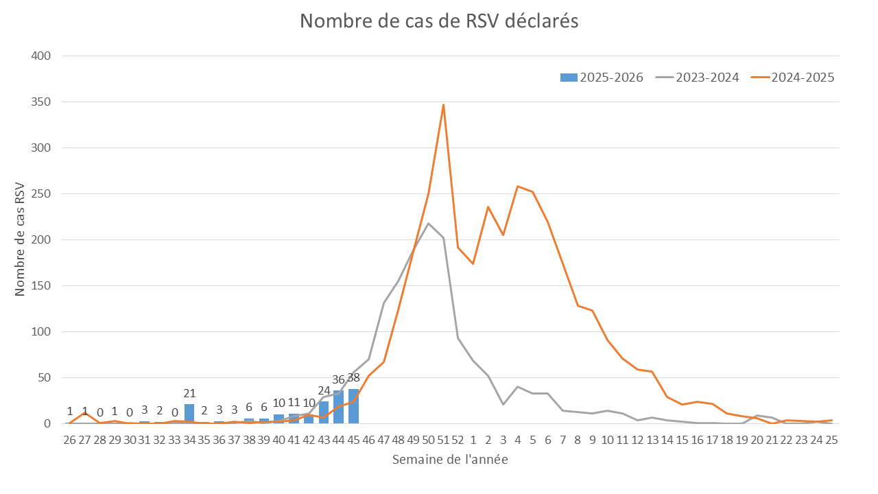 Virus respiratoire syncytial (RSV): niveau bas du nombre de cas