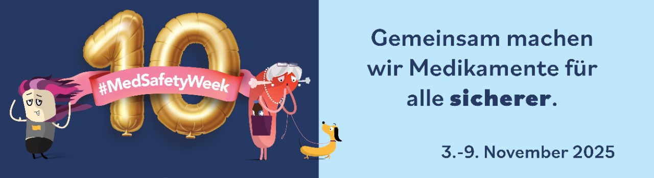 Kampagne „MedSafetyWeek 2025“ – vom 3. bis 9. November 2025 laden wir Sie ein, an einer Woche der Sensibilisierung für eine bessere Pharmakovigilanz teilzunehmen. „Wir alle haben die Möglichkeit, die Arzneimittelsicherheit zu verbessern.“ Der Pharmakovigilanzdienst (PhV) der Abteilung für...