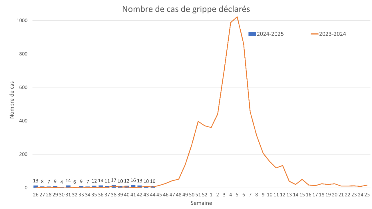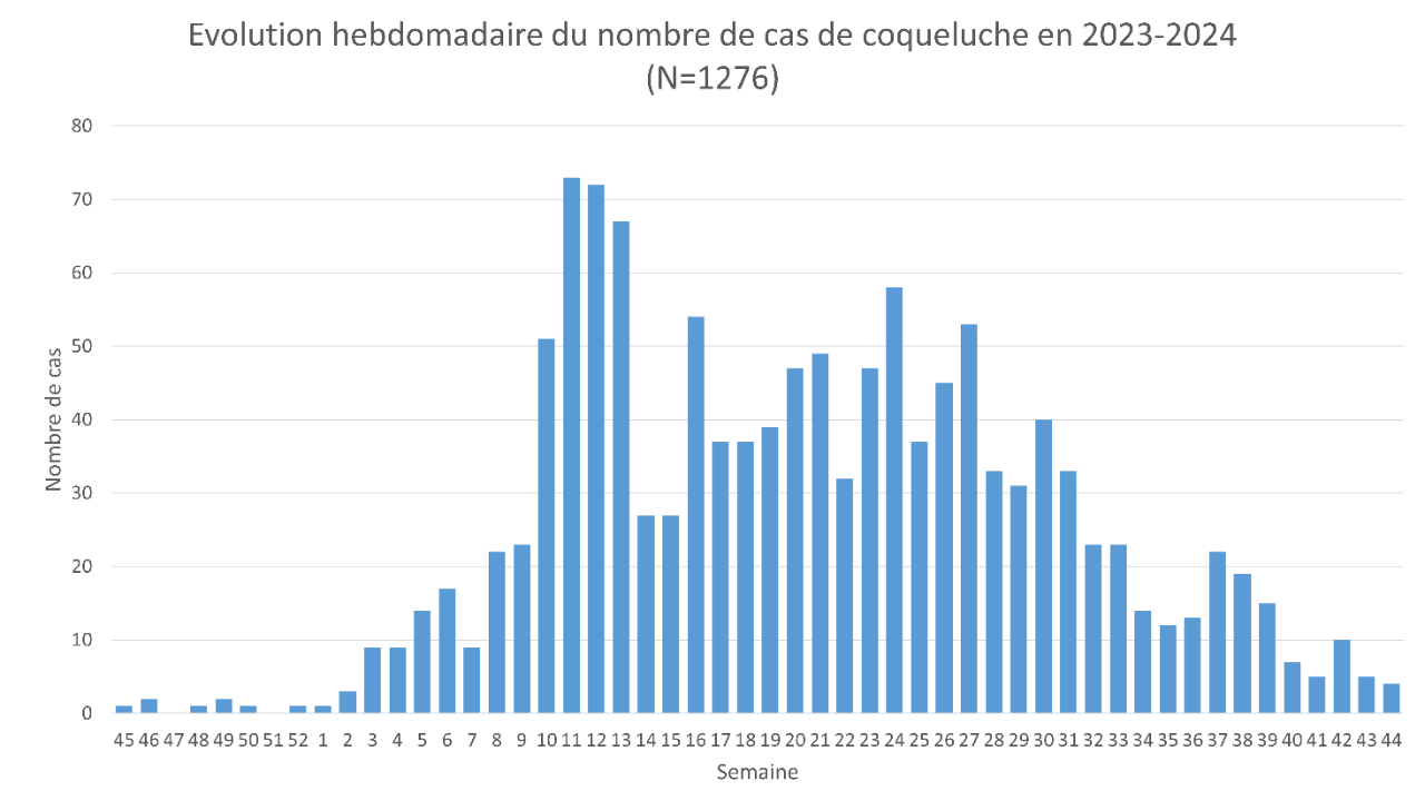 Le nombre de cas de coqueluche a, quant à lui, enregistré une baisse, passant de 5 cas à 4.